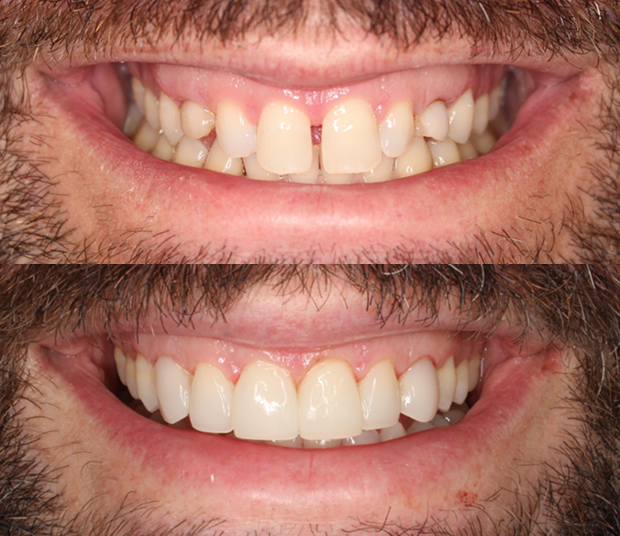 • Minor Gaps in Between Teeth: Gaps or Diastemas can occur anywhere in the mouth but are most common between the front teeth. This condition is usually a cosmetic concern that can be fixed with composite fillings, braces, or non-prep veneers.